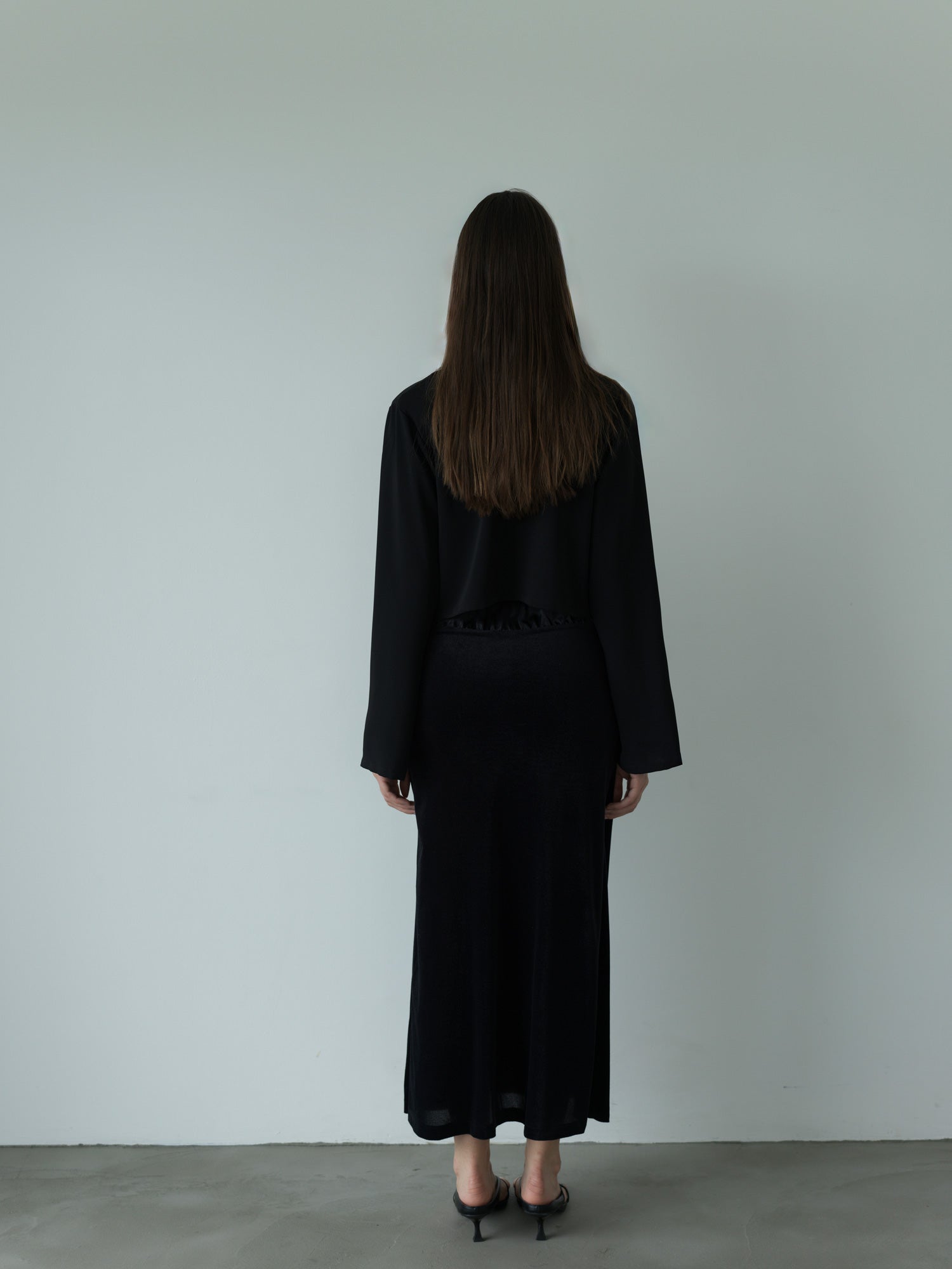 マットな質感の上質なサテンを使用し、さらっとした着心地のブラウスです。RAW STUDIO定番の深めのVネックは前にして着ることはもちろん、後ろをVネックにして着ることもできる2way仕様。袖はベルスリーブのように袖口が広がったシルエットなのもポイントです。取り外し可能な肩パッドが付属されているので、肩のラインも気分にあわせて調整いただけます。