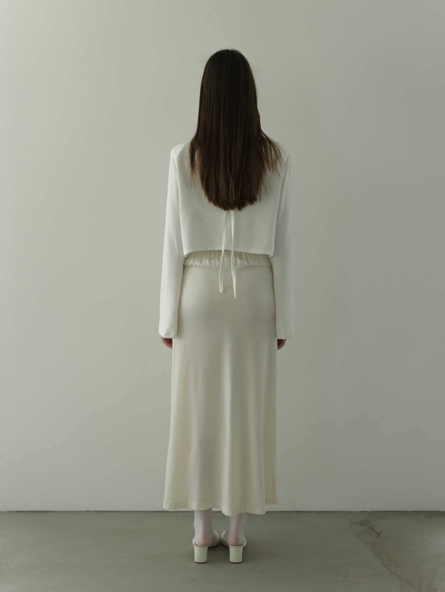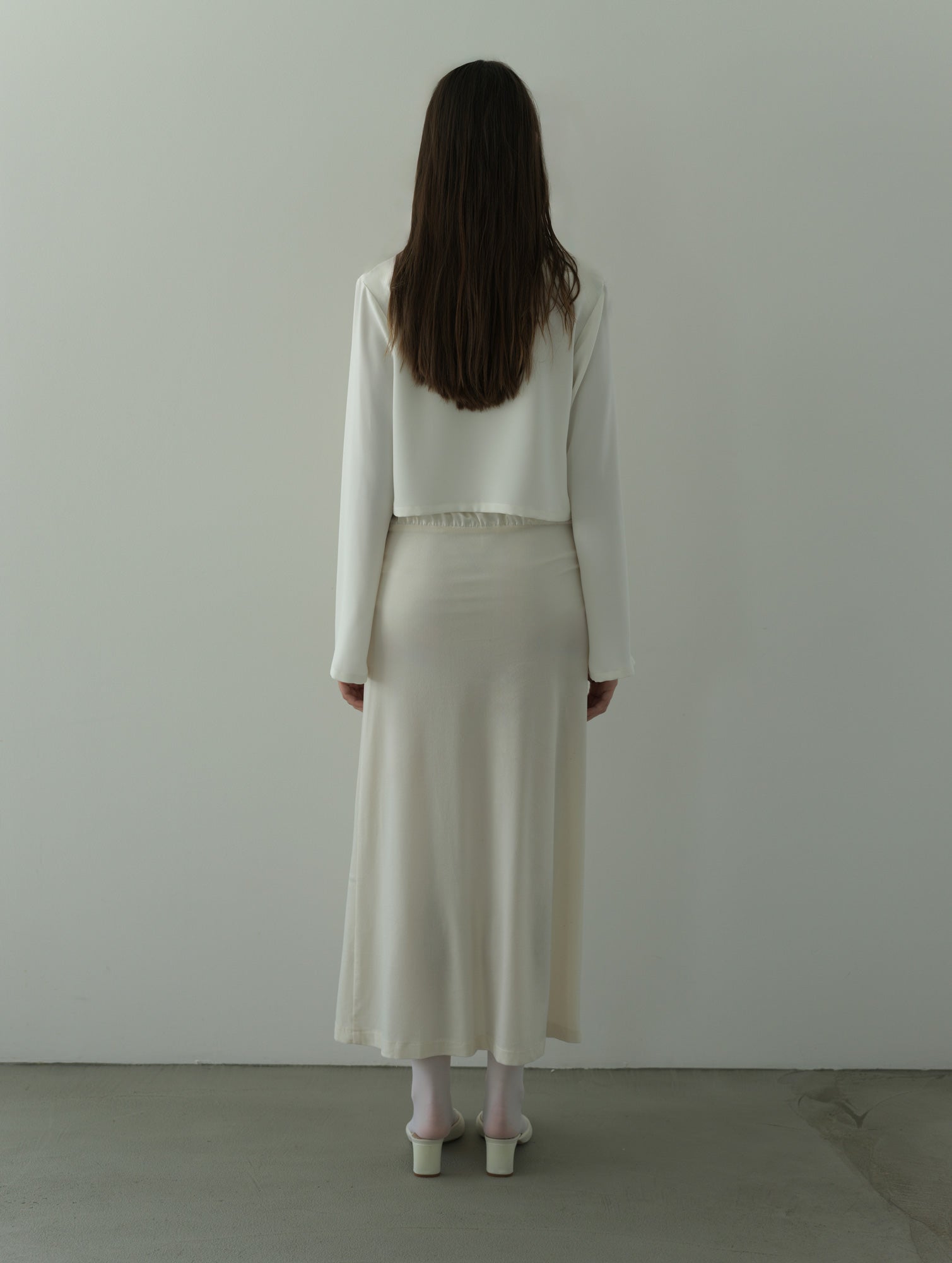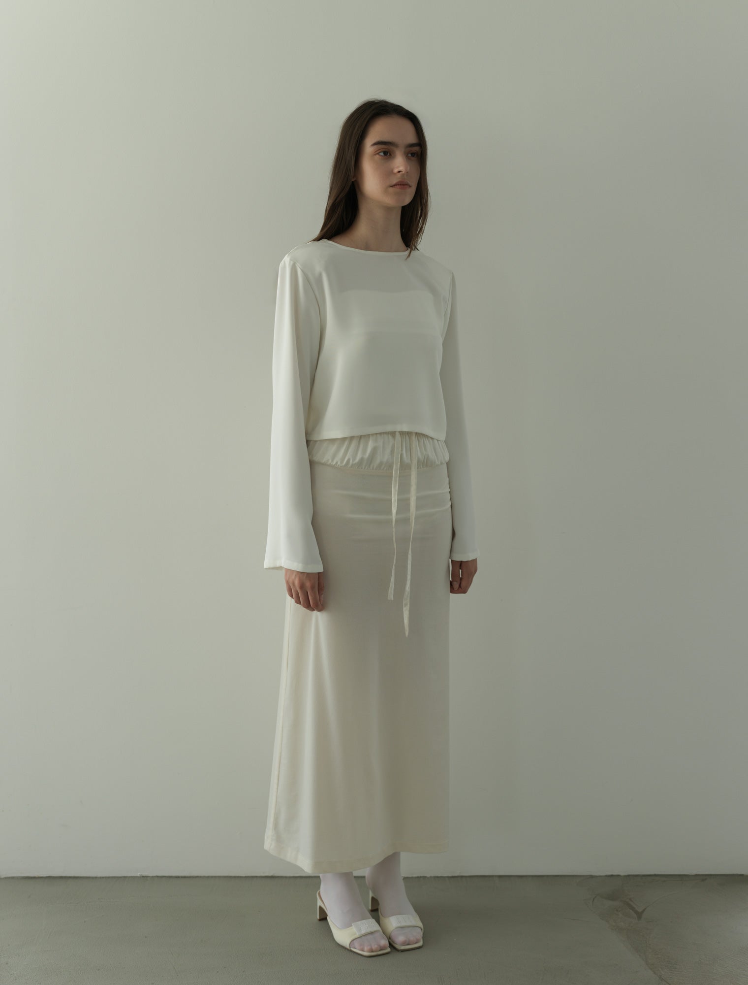 マットな質感の上質なサテンを使用し、さらっとした着心地のブラウスです。RAW STUDIO定番の深めのVネックは前にして着ることはもちろん、後ろをVネックにして着ることもできる2way仕様。袖はベルスリーブのように袖口が広がったシルエットなのもポイントです。取り外し可能な肩パッドが付属されているので、肩のラインも気分にあわせて調整いただけます。