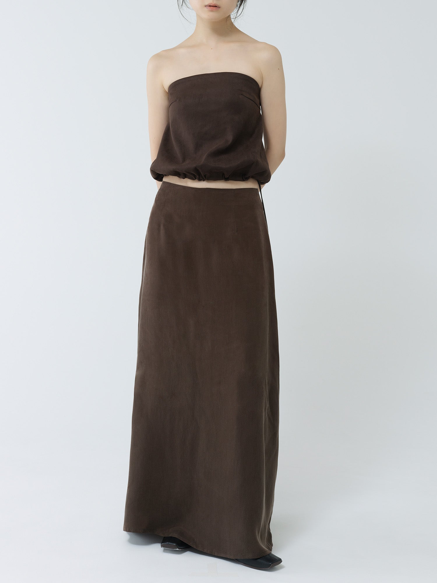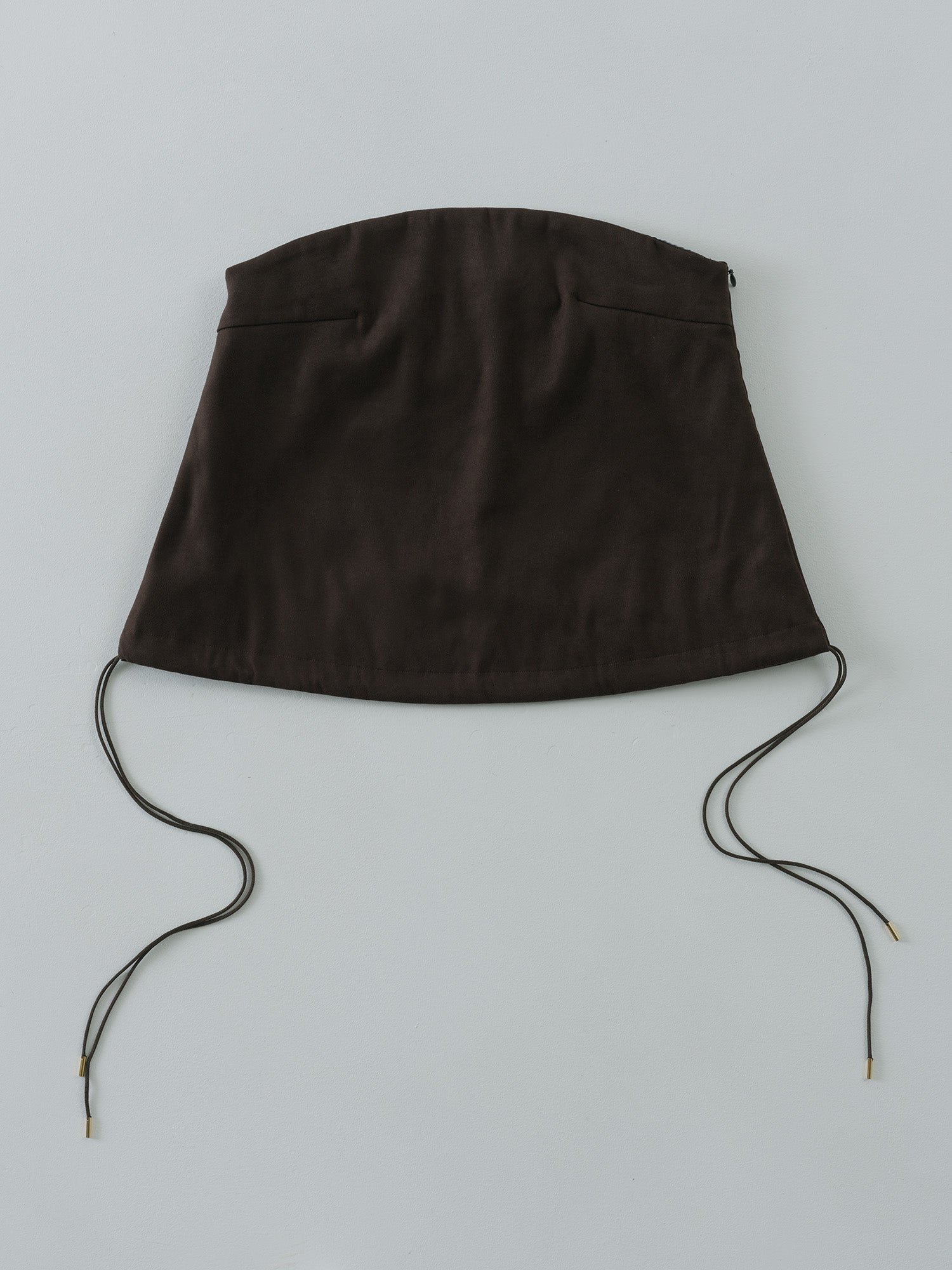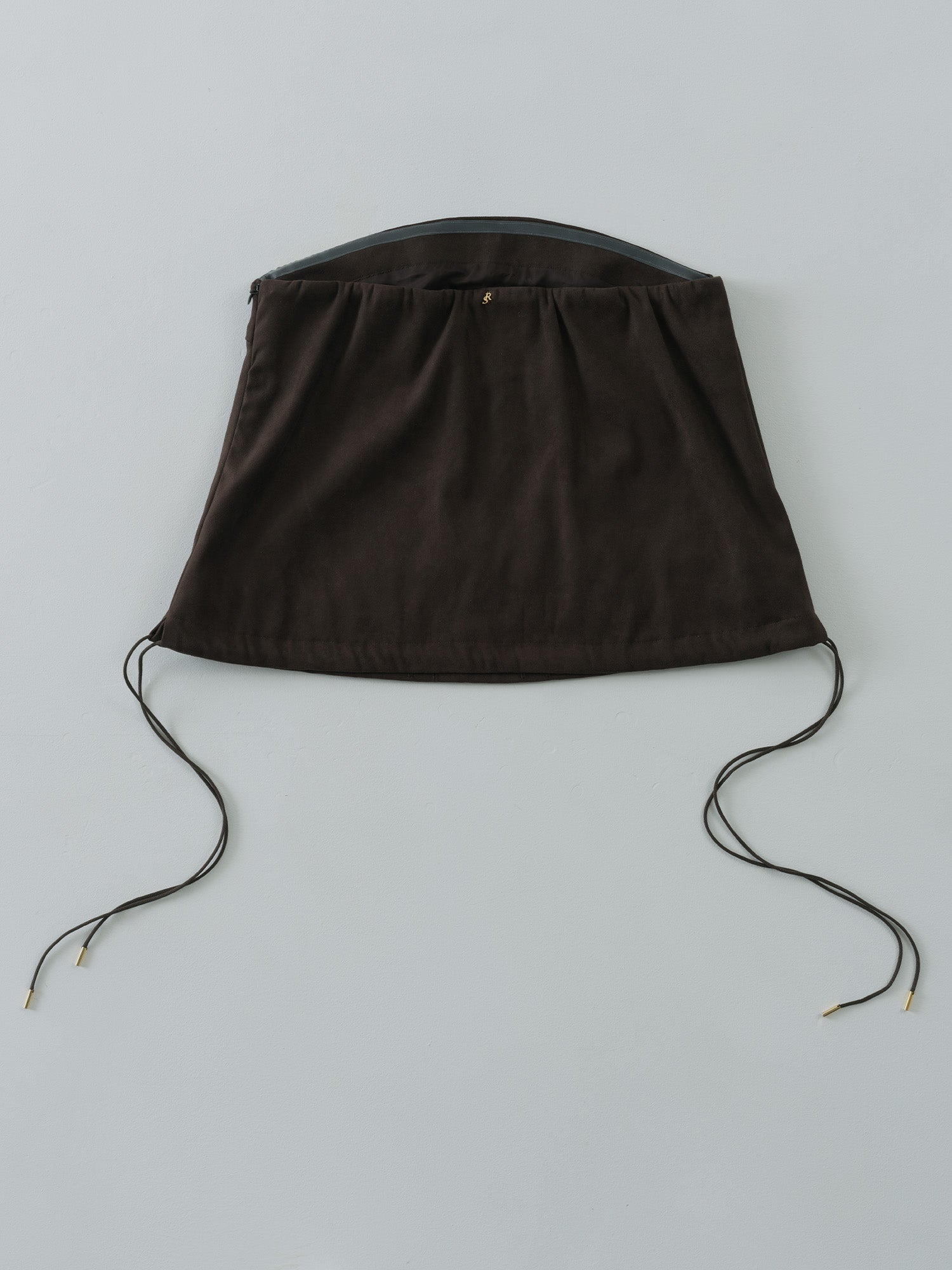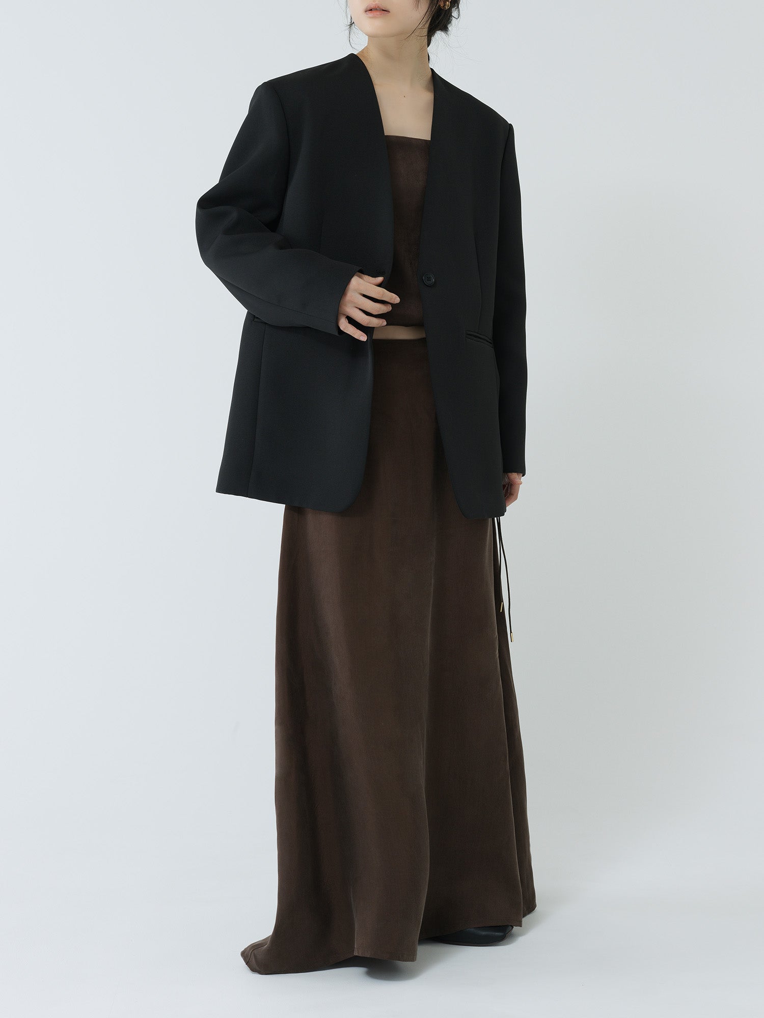 お素材はスエード素材で、ラフに着られるよう、身体のラインを拾いすぎない素材を使用しました。